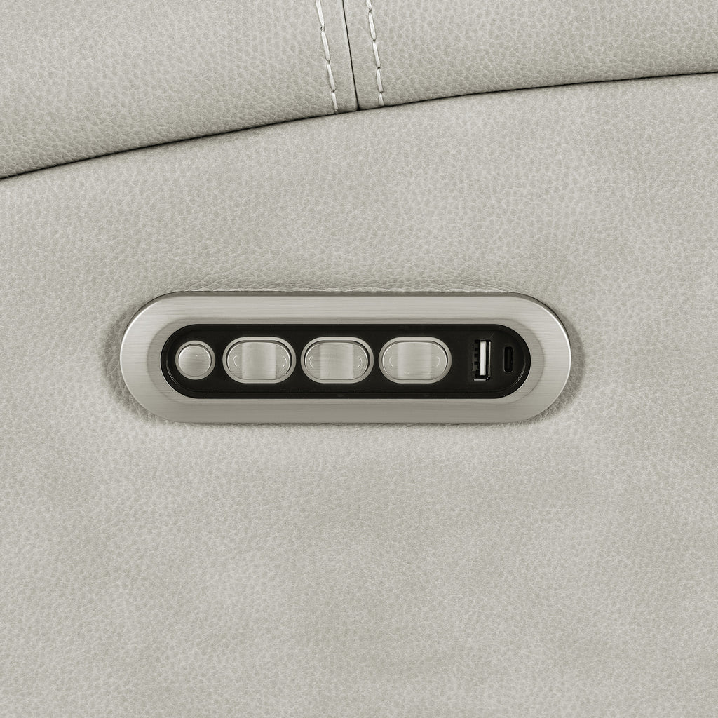 A sanctuary of comfort and thoughtful design, this triple power reclining sofa turns the everyday into something extraordinary. Upholstered in soft leatherette with contrast stitching, its sculpted silhouette offers both structure and serenity. Sink into deep, supportive cushions while power recline, headrest, and lumbar settings respond with effortless grace. A drop-down console reveals hidden storage and ambient LED lighting, while the sleek control panel—complete with dual USB ports—keeps everything within reach. Even in moments of stillness, a rear power connection and emergency battery option ensure comfort never loses power. Key Features: • Triple power reclining sofa with power headrest, power lumbar, and smooth recline functionality • Drop-down center console with lift-top storage and dual LED reading lights • Control panel includes USB-A and USB-C charging ports and a home button for quick reset • Rear AC power socket allows easy wall plug-in and houses 9V battery for emergency power-down • Armrests feature hidden compartments with built-in stainless steel cup holders • Charcoal leatherette upholstery with contrast stitching offers soft texture and modern style