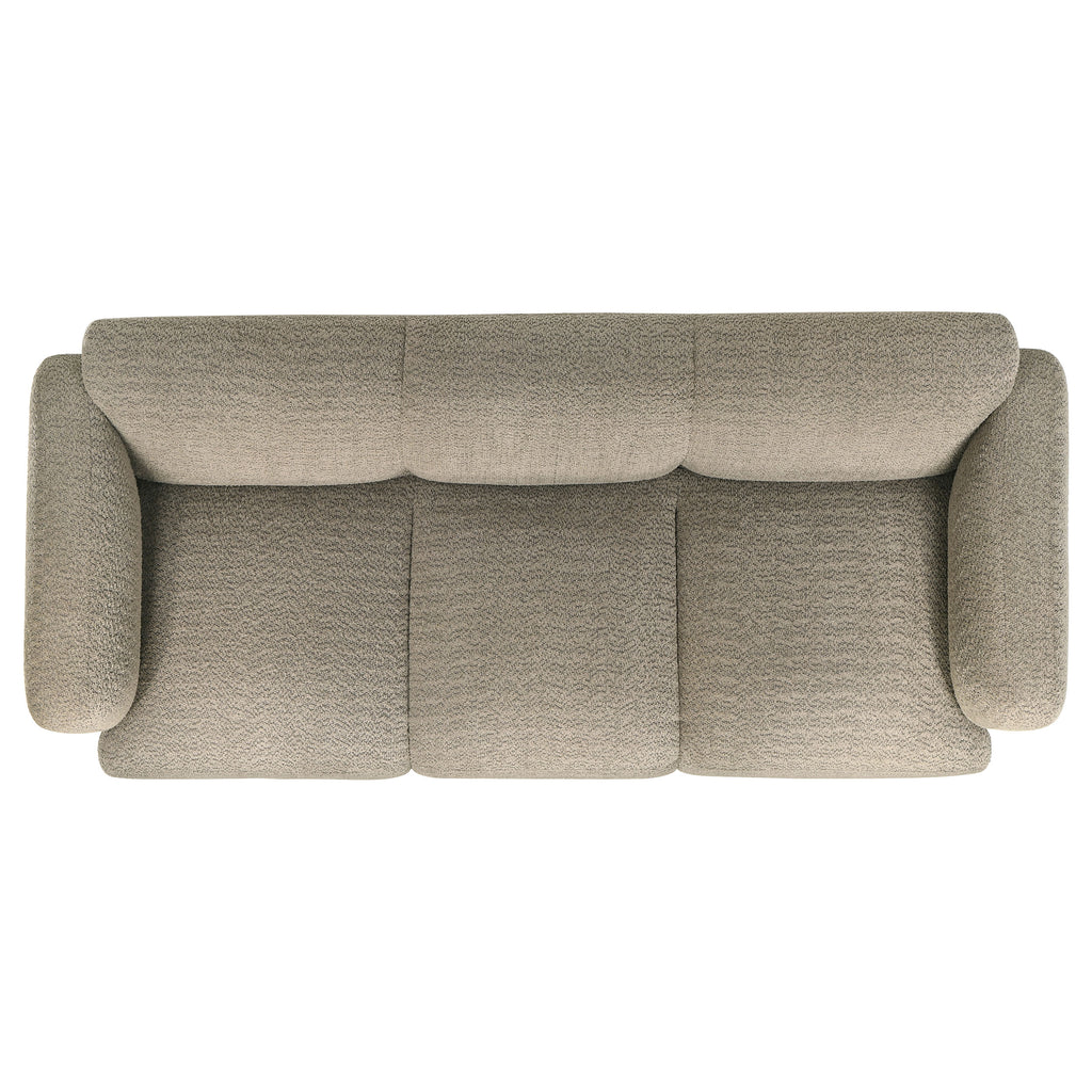 This sculptural sofa set blends soft curves with modern simplicity for a cozy, elevated lounge experience. Each piece is wrapped in richly textured fabric and designed with a low-profile frame, rounded edges, and wide track arms that invite you to unwind. High-quality foam and pocket coil seating ensure supportive comfort that lasts. With its seamless silhouette and tactile finish, this sofa set offers minimalist warmth and relaxed sophistication for any contemporary living space. Key Features: • Sofa set with rounded silhouettes and low-profile frames for sculptural modern appeal • Upholstered in textured white fabric with soft feel and warm visual dimension • Curved track arms and continuous lines create an inviting, enveloping shape • High-density foam cushions provide plush comfort across all seating areas • Pocket coil seating delivers long-lasting support and maintains structure • Perfect for modern living spaces seeking soft form and relaxed sophistication