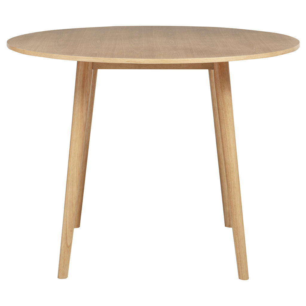 Elevated and inviting, this counter height dining set blends mid-century ease with farmhouse charm. A round table with tapered legs anchors the space, while Windsor-style chairs feature tall spindle backs and gently contoured seats for enduring comfort. Crafted from solid rubberwood with ash veneer over engineered wood, each piece highlights a soft natural grain. Perfect for kitchen nooks, breakfast counters, or casual dining spaces. Key Features: • Counter height dining set includes round table and chairs in a warm, light ash wood finish • Tabletop rests on tapered legs that offer mid-century styling with a compact footprint • Light ash Windsor-style chairs feature tall spindles and curved seats for relaxed elevated dining • Angled legs and stretchers on chairs provide support, strength, and balanced proportion • Crafted from solid rubberwood, ash veneer, and engineered wood for lasting performance • Light ash grain finish complements bar settings, kitchen islands, or elevated nooks