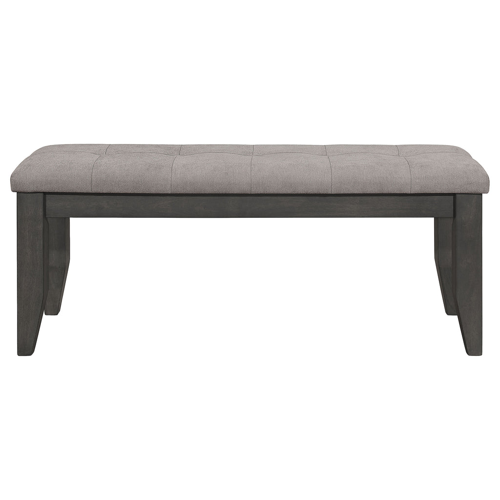 A versatile addition to any dining space, this dining bench offers both stylish seating and space-saving functionality. The solid rubberwood frame provides lasting durability, while the padded seat ensures comfort. A button-tufted design adds a sophisticated touch, while the sturdy legs provide reliable support. Designed for casual and formal dining spaces alike, this bench is perfect for families, guests, or everyday use, and easily tucks under the table when not in use. Key Features: • Stylish dining bench offers space-efficient seating for any dining room • Warm cappuccino finish enhances its classic and versatile aesthetic • Padded seat upholstered in black faux leather for a refined, modern feel • Solid rubberwood construction ensures strength and durability for daily use • Button-tufted detailing adds a sophisticated and elegant touch to the seat • Compact design allows for easy storage beneath the table when not in use