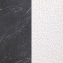 Reimagine your dining room with the fresh, elegant character of a five-piece modern dining set. Centered on a round table with a faux black marble tabletop, the set offers compelling contrast and dimension in a kitchen or dining room. The tabletop is printed black melamine, designed to provide seamless character at an affordable price point. The base of the table is a star pedestal crafted in hammered black metal, offering artistic flair to your space. Four side chairs complete the set, pairing black hammered legs with plush cream upholstery with charming texture and plush cushioning.