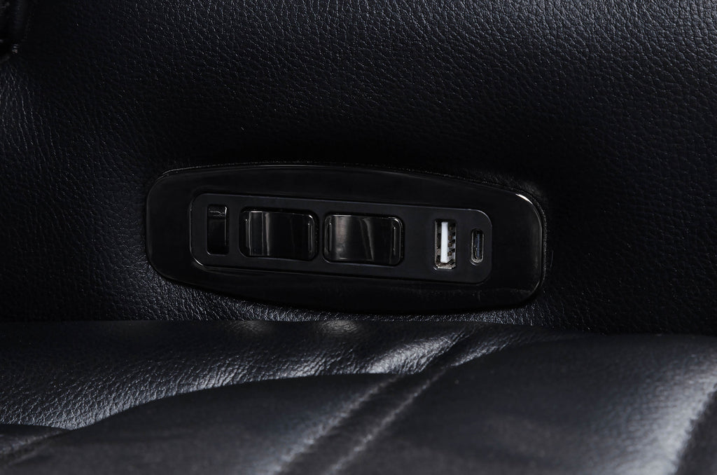 Designed for modern comfort and convenience, this dual power loveseat blends technology with bold styling. Power recline and adjustable power headrests offer personalized relaxation, while the center console features a lift-top compartment, two cup holders, and a built-in Bluetooth speaker for seamless audio. Finished in sleek black leatherette with dramatic LED under glow, it brings smart design to any contemporary lounge or home theater. Key Features: • Dual power loveseat in black faux leather with power recline and power headrest control • Center console includes lift-top storage, two cup holders, and built-in Bluetooth speaker • Both sides feature control panels with USB-A, USB-C ports, and one-touch home buttons • Sleek padded arms with cup holders add comfort and convenience to every seat • Blue LED under glow lighting enhances the base with a bold modern ambiance • Upholstered in smooth leatherette with deep channeling for comfort and visual depth