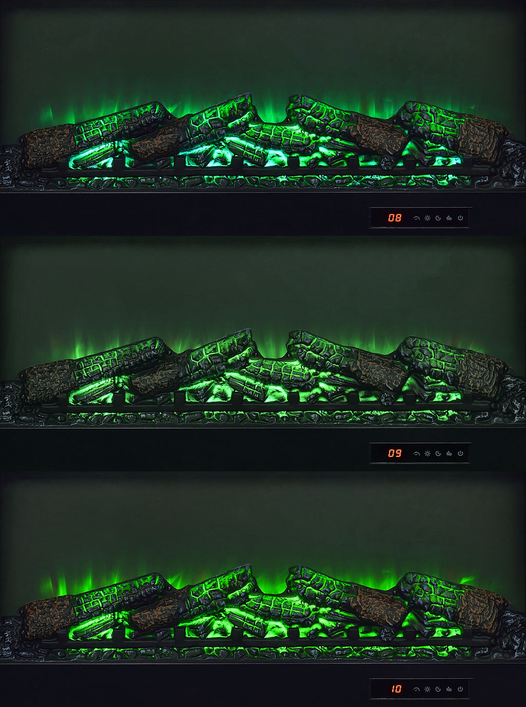 This fireplace TV stand combines rustic charm and modern convenience with a lifelike burning ember display. Finished in rich dark pine, it features two framed tempered glass doors that open to adjustable shelving for media or decor. The central fireplace insert provides visual warmth, all controlled by a convenient wireless remote. With clean lines, black hardware, and integrated cord access, it accommodates TVs up to 80 inches. Please note that there is no heat function included. Key Features: • Fireplace TV stand in dark pine finish with black hardware and contemporary linear styling • Realistic burning ember display without heat functionality delivers visual warmth and ambiance • Wireless remote provides easy control over flame brightness, color settings, and timer function • Two framed tempered glass doors open to adjustable shelves for media or decorative storage • Integrated cord management keeps cables neatly concealed and electronics accessible • Supports flat panel TVs up to eighty inches wide and is crafted from durable engineered materials