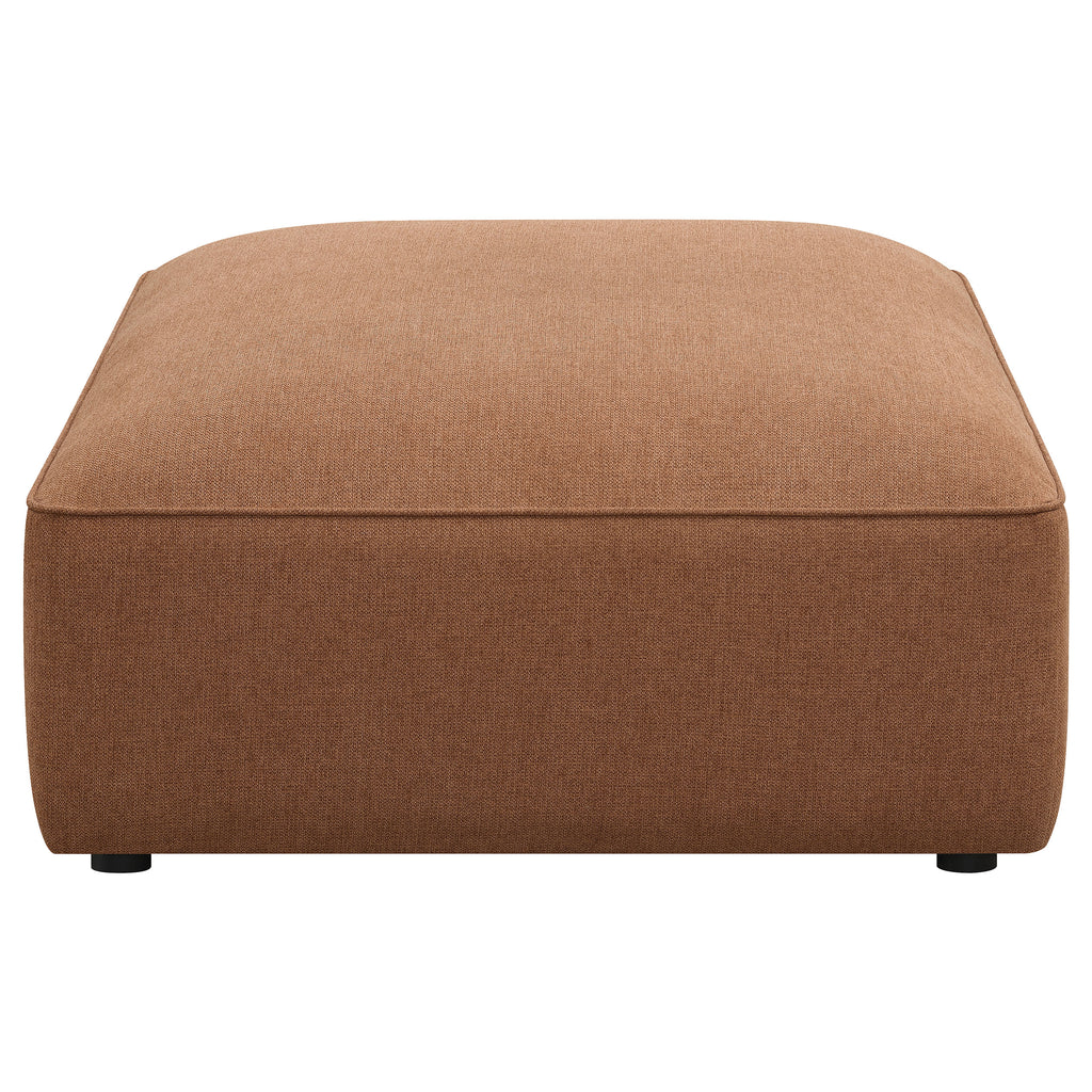 Gather around this large sectional sofa, featuring six modular pieces that invite you to rearrange it as needed for company and parties. Thick wide bases with waterfall edge-like profiles are accented with welt trim for a sleek tailored aesthetic. Perfect for accompanying your existing decor, the softly textured grey woven fabric offers a neutral and monochromatic color palette, welcoming fellow neutrals or adding a backdrop to vibrant colors. Matching pillows make up the back cushions, leaning back into track style armrests and backs. An ottoman easily transitions from a chaise lounge to a coffee table instantly. Key Features: • Six-piece modular sectional in grey fabric for versatile living room seating arrangements • Tailored welt trim accents the wide bases for a refined and modern sectional design • Thick cushions and plush matching pillows provide comfort for family and guests • Grey woven upholstery offers a soft feel and neutral backdrop for any interior • Black legs feature non-skid grip protectors for stability on smooth floor surfaces • Constructed with fabric, foam, larch, plywood, and plastic for lasting durability